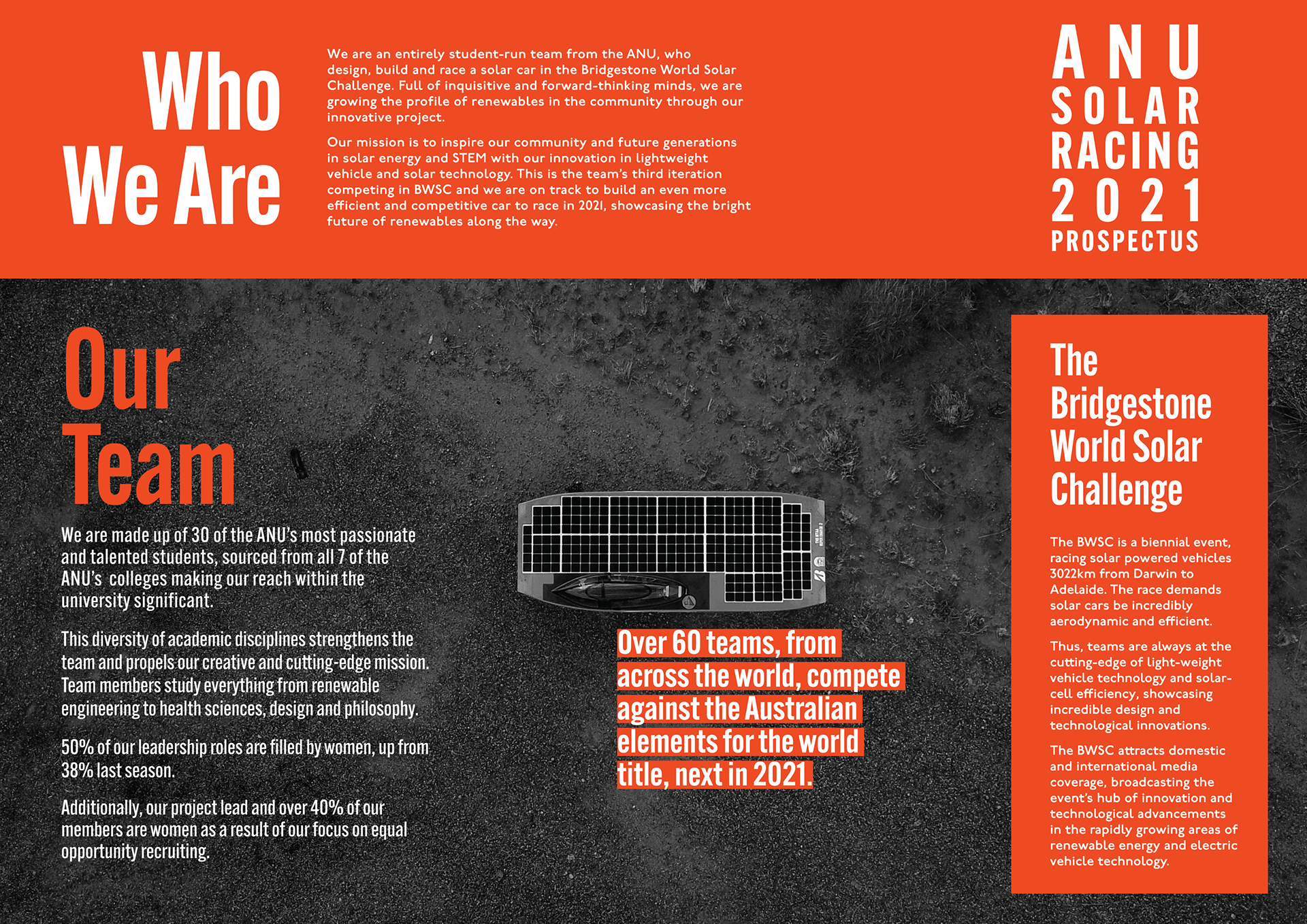 Visual Identity design for the ANU Solar Racing Team in the lead up to the Bridgestone World Solar Challenge.